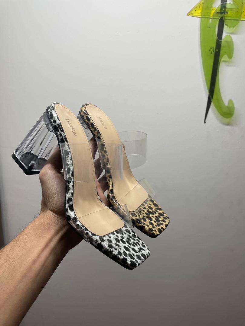 صندل پاشنه ۲سانتی پلنگی زنانه با پاشنه شیشه ای برند آی تک