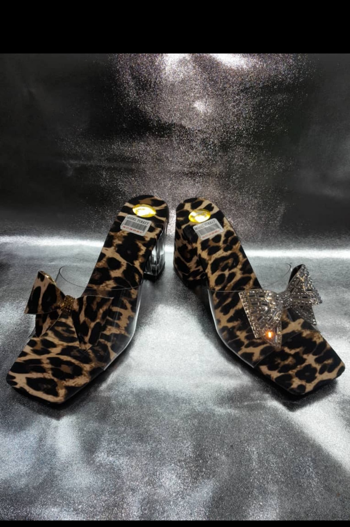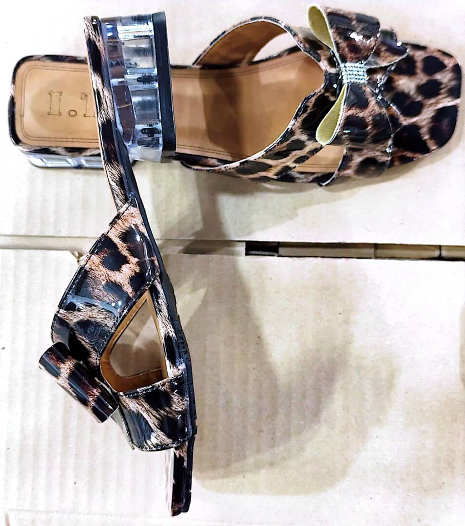 کفش صندل زنانه پلنگی پاپیون برند i tak پاشنه شیشه ای ۳ سانتی با تضمین کیفیت پاشنه